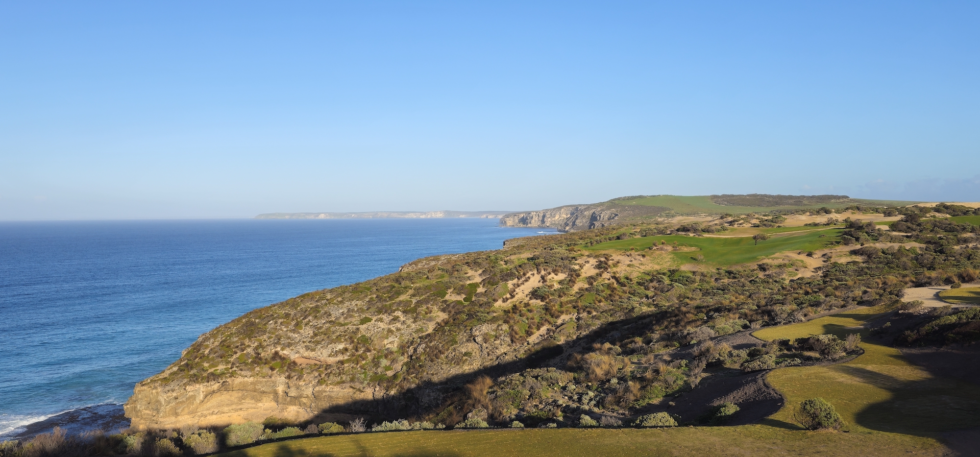 Importantly, the tops of the cliffs are sandy, and ideal for golf – resembling in some ways the rolling Cups country of the Mornington Peninsula, with its dune corridors and natural golfing valleys.